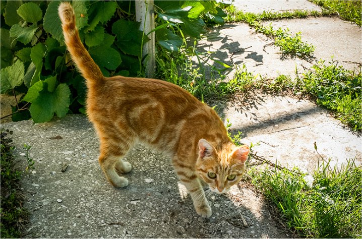 ネコ科の動物は、しばしば、しっぽを垂直に立てたり