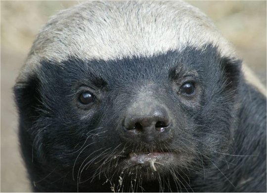 ラーテルは、普段は温和で、おとなしそうな表情を