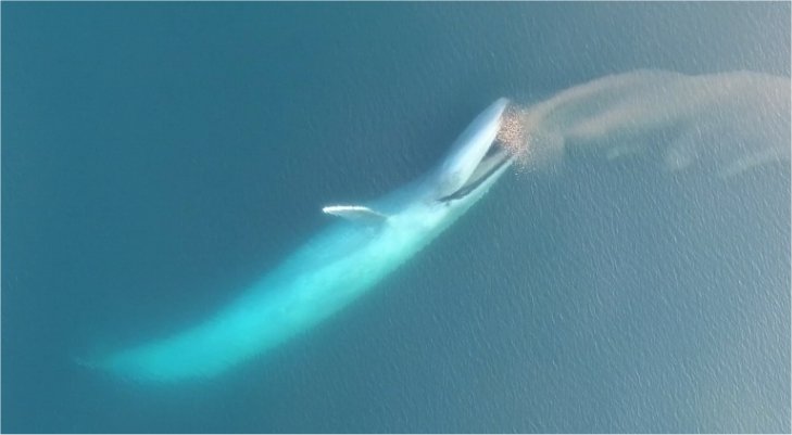 シロナガスクジラが、大量のオキアミの群れに遭遇すると